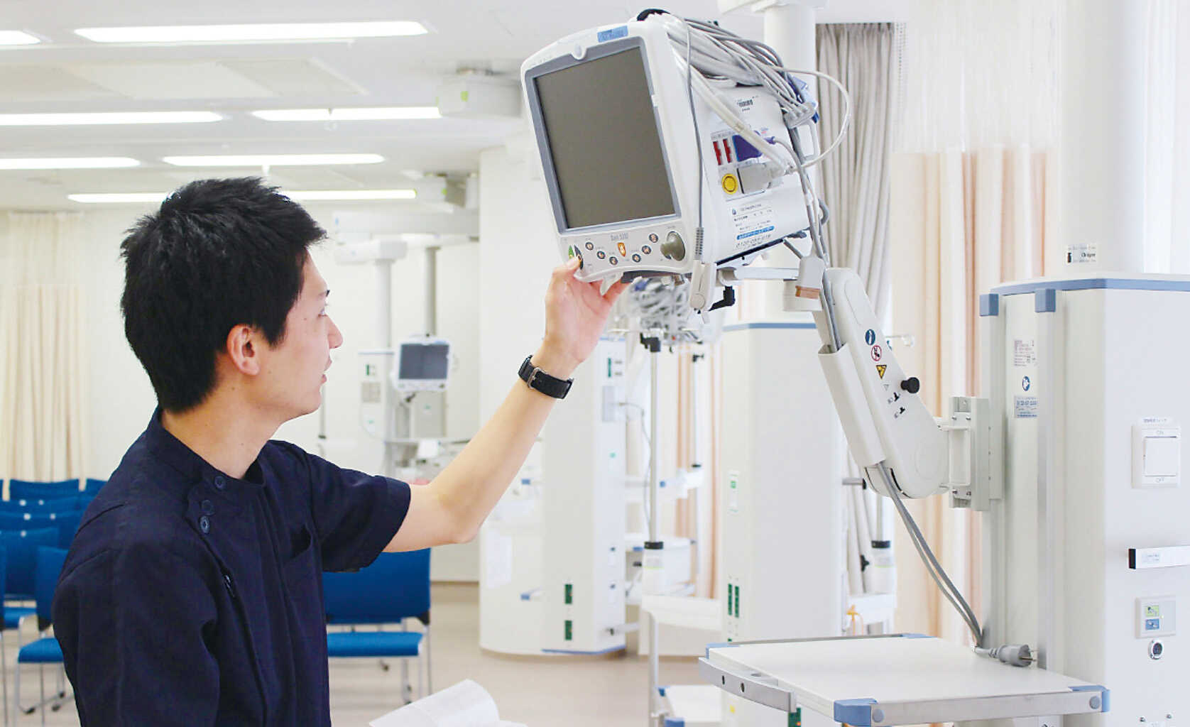 私たちは、病院内で医療機器の保守点検を専門に行う外部スタッフです。日々使われる機器がいつでも安全・正確に使えるように、点検やトラブル対応をしっかりサポートします。
